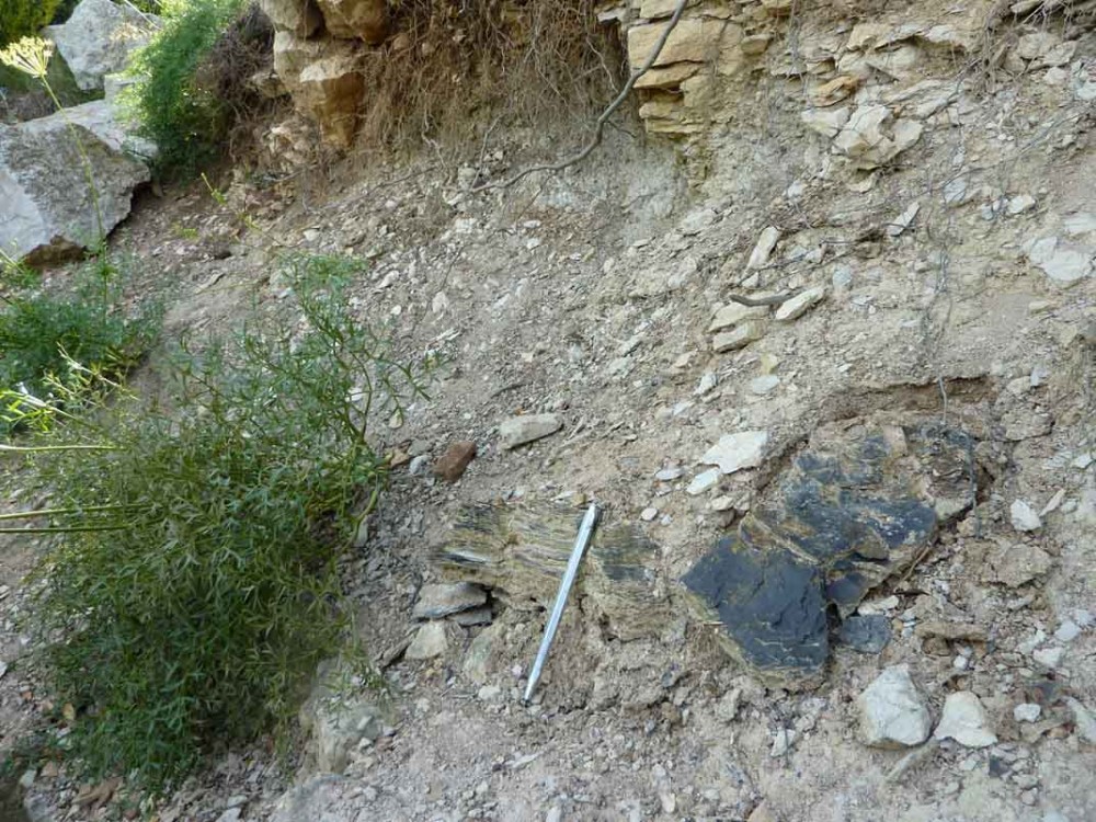 Un point de vue bâti sur du jurassique où on peut voir une couche de lignite.