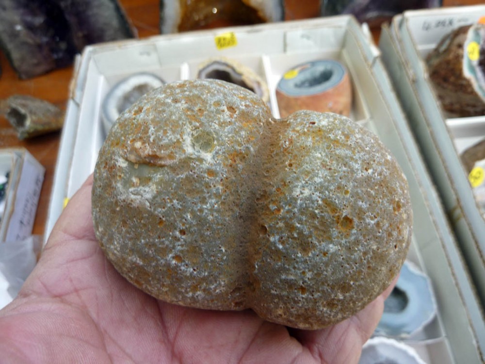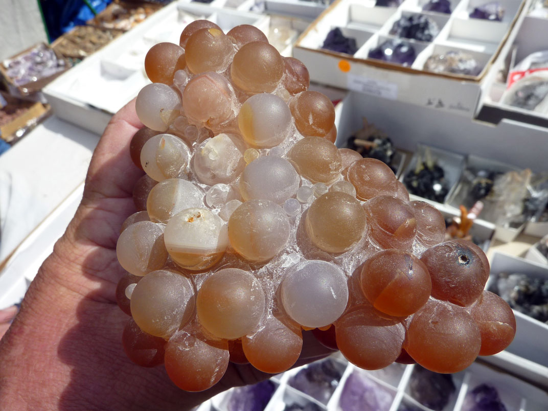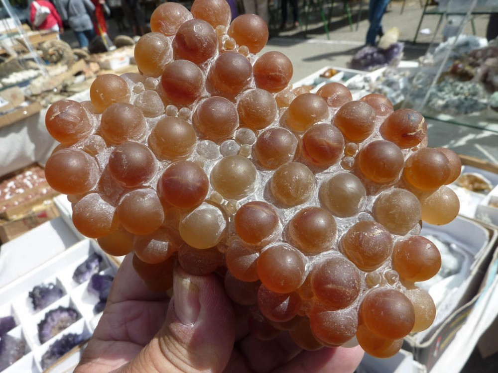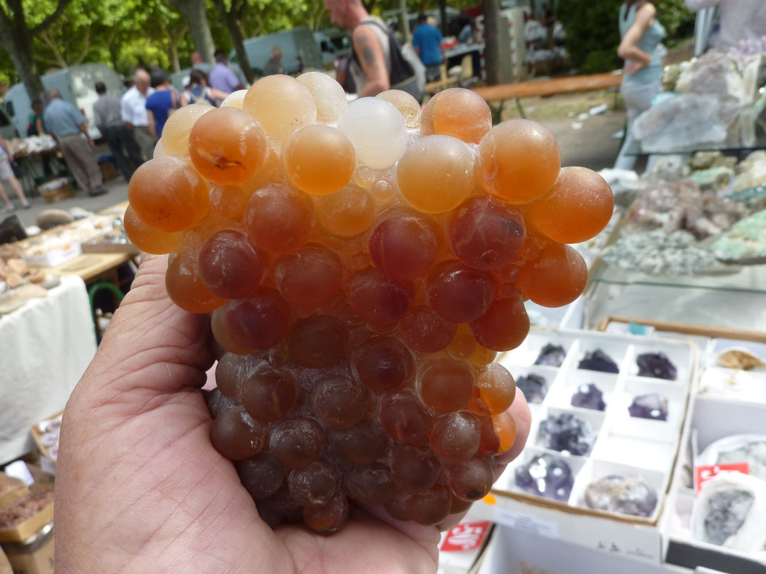 Cette calcédoine "raisin" pose, au vendeur en premier, un problème: agglomérat naturel, ou pas ?