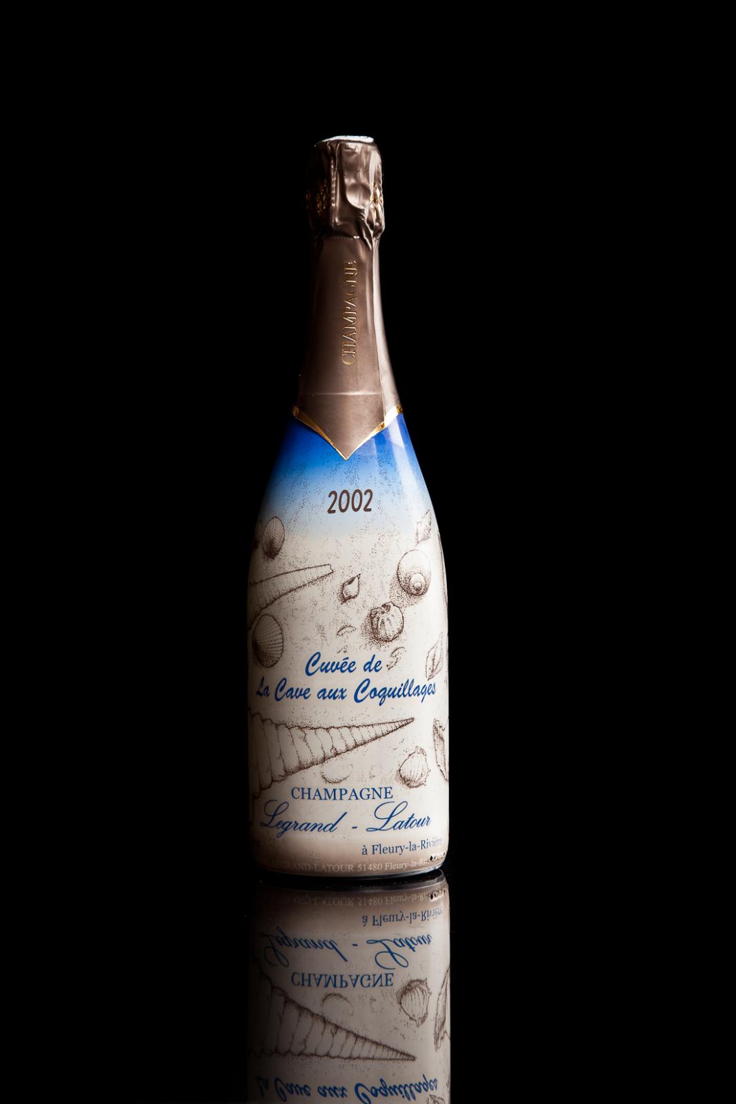 Voici cette bouteille de champagne La Cave aux Coquillages, une special cuvée d'un champagne de Legrand-Latour, dediée à la touristique "La Cave aux Coquillages", de Fleury-la-Riviere.