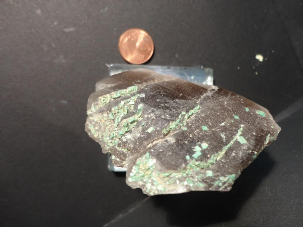 torbernite sur quartz fume