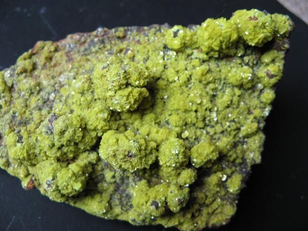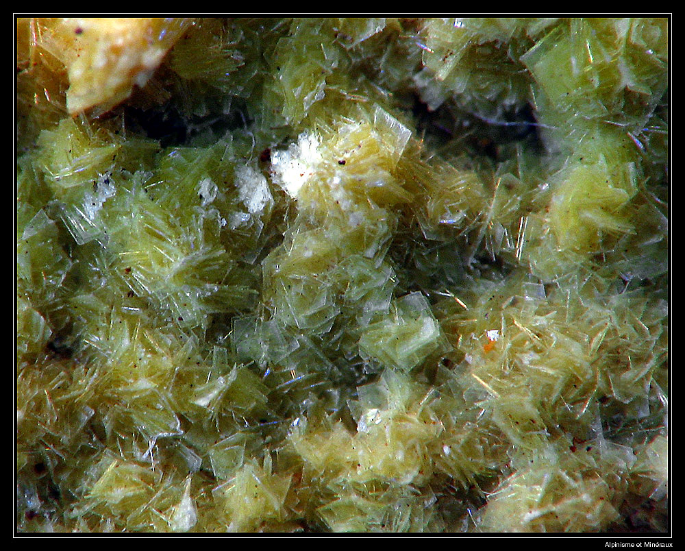 Margnac-Compreignac dans le 87 (Anthozonite, Autunite, Billietite, Phosphuranylite, Sabugalite et Uranophane).