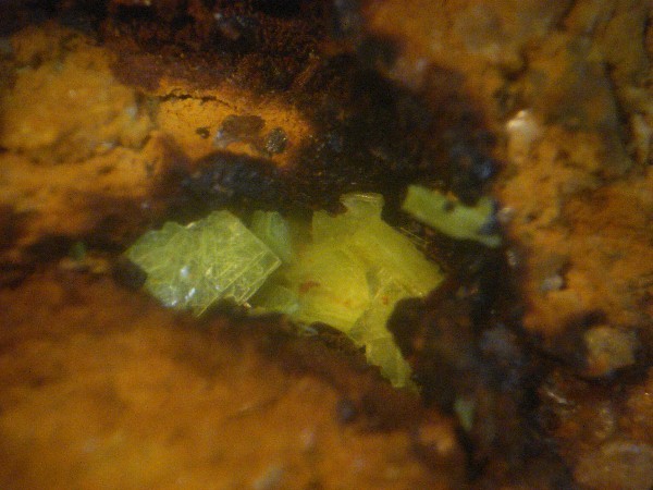 Davignac "Boucheron" dans le 19 (Autunite, Phurcalite, Phosphuranylite, Torbernite, Uranocircite et Uranophane).
