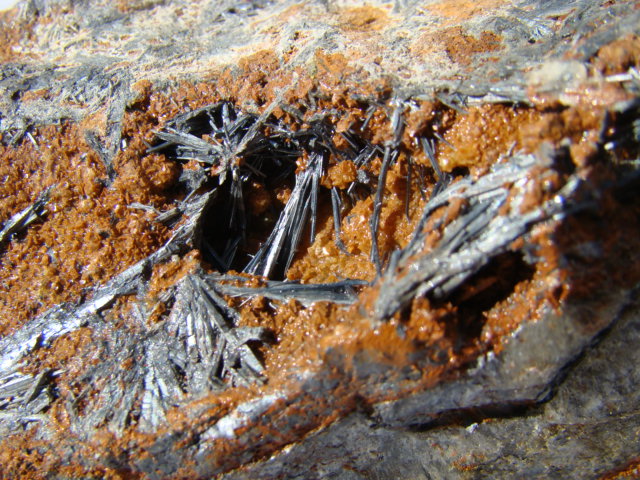 et pour couronner le tout ce que je pense être des belles piéces; des stibines de Corse et un realgar de Matra. et une thematique sur les roches et quelques mineraux de France