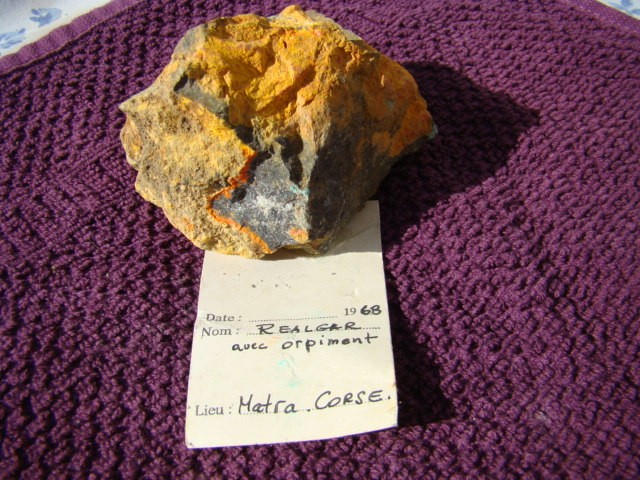 un réalgar et orpiment de matra, Corse avec son étiquette.
