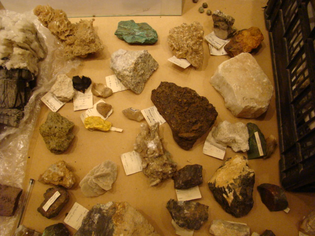 j'ai commencé le tri : hematite de l'ile d'elbe, opale du massif central, fluorine française, cinabre d'almaden, une pyromorphite ,