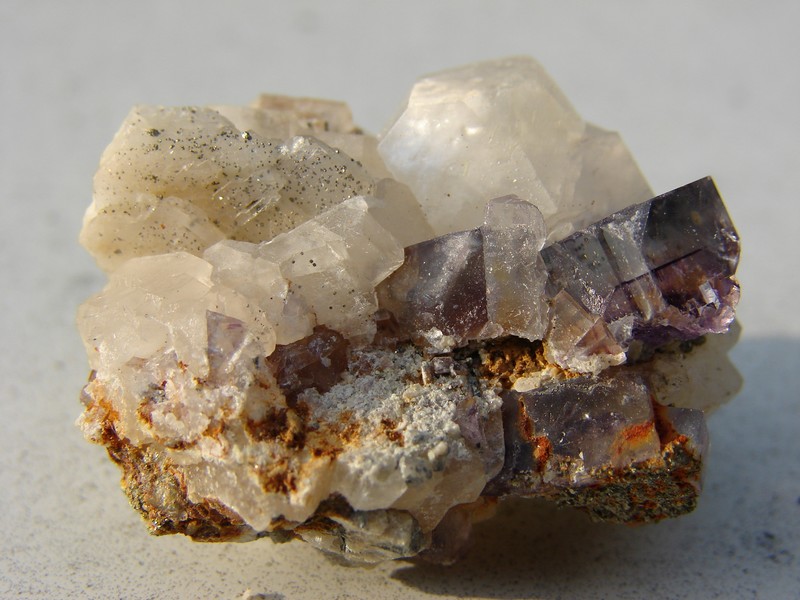 J'ai une seule pièce de St Peray qui réuni calcite, baryte saupoudrée de pyrite et fluo violette, je l'avais déjà postée sur le forum.