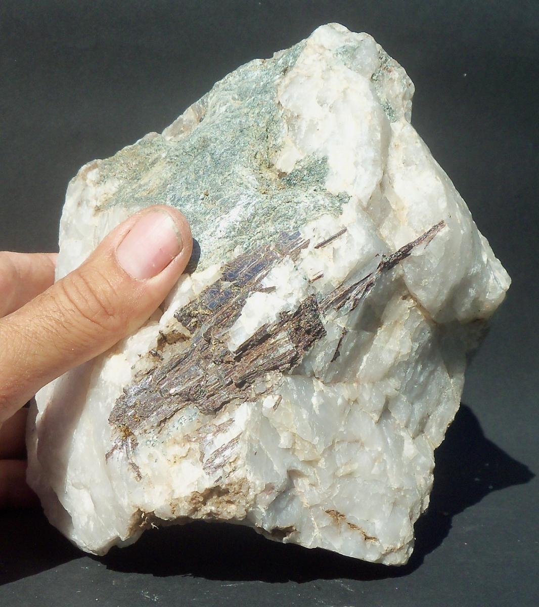 Bon alors si c'est du micaschiste (donc logique pour les grenats) faut voir si ça ne serait pas de la tourmaline...