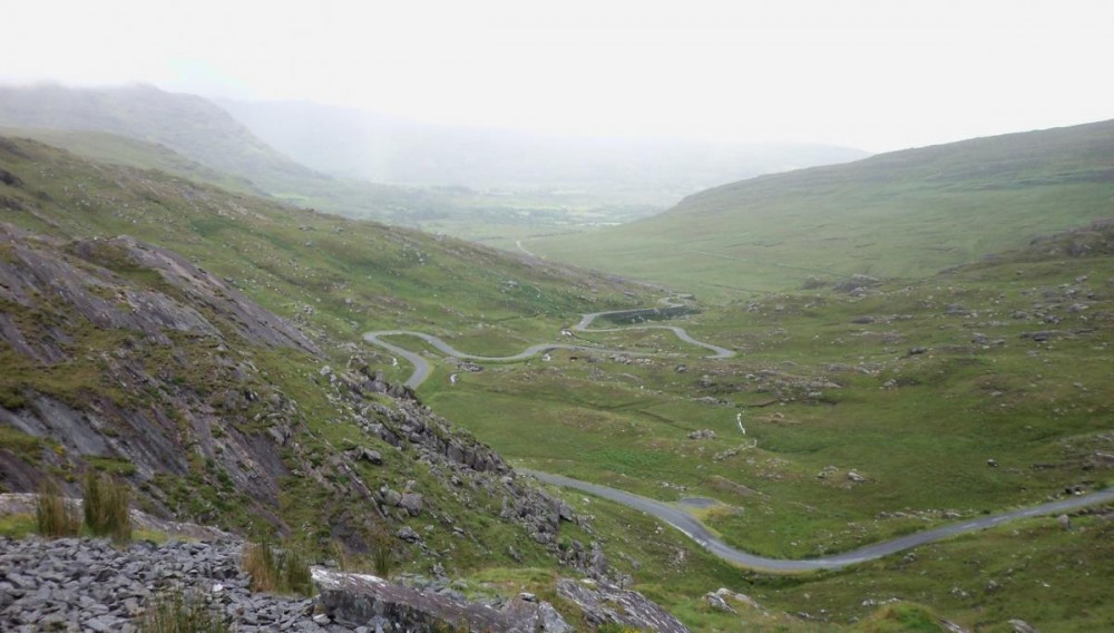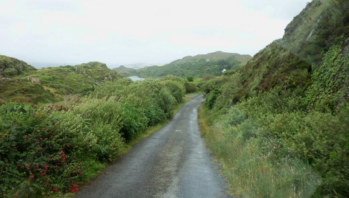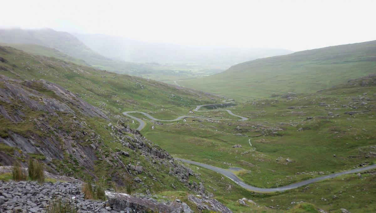 Sur ces routes, la vitesse est limitée à 110 km/h. Les Irlandais ont mis au point une technique imparable pour empêcher que les conducteurs ne dépassent celle-ci. Lors de la construction, ils dament leurs enrobés avec des rouleaux-compresseurs achetés dans le plus grand pays d’Extrême-Orient ( Celui avec deux outils sur fond rouge). Particularité de ces engins : des rouleaux excentrés ! Ils obtiennent ainsi des chaussées au profil étonnant. Une coupe verticale montrerait une sinusoïde presque parfaite.