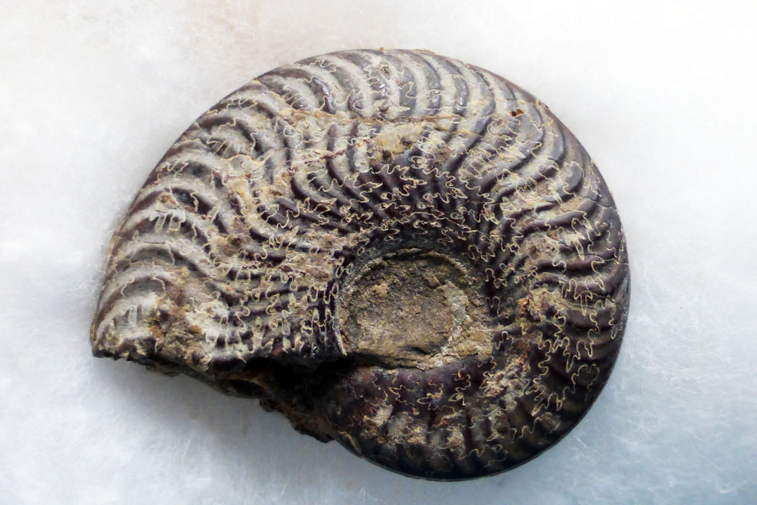 Pour la dernière ammonite (en haut au centre) :