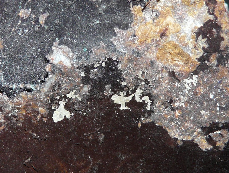 Enfin, un autre gisement particulier est celui de Chaméane, qui est la localité type de 3 seleniures (chameanite, giraudite et geffroyite). Bien sur, ces espèces sont quasiment impossibles à distinguer à l'oeil nu. Mais il y a eu aussi des espèces plus macros et non moins rares, en tout cas uniques en France. c'est le cas de l'umangite, qui se présente sous forme d'enduits irrisés, rappelant les belles couleurs de la chalcopyrite.
