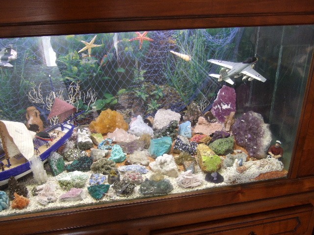 je ne peu pas vous présenter mes vitrines car je serais hors-sujet, j'ai plutot des cristaux mais je met cette photo qui est plus qu'originale. tout le monde n'a pas les mêmes idées sur les collections ou les mêmes moyens financiers pour les vitrines
