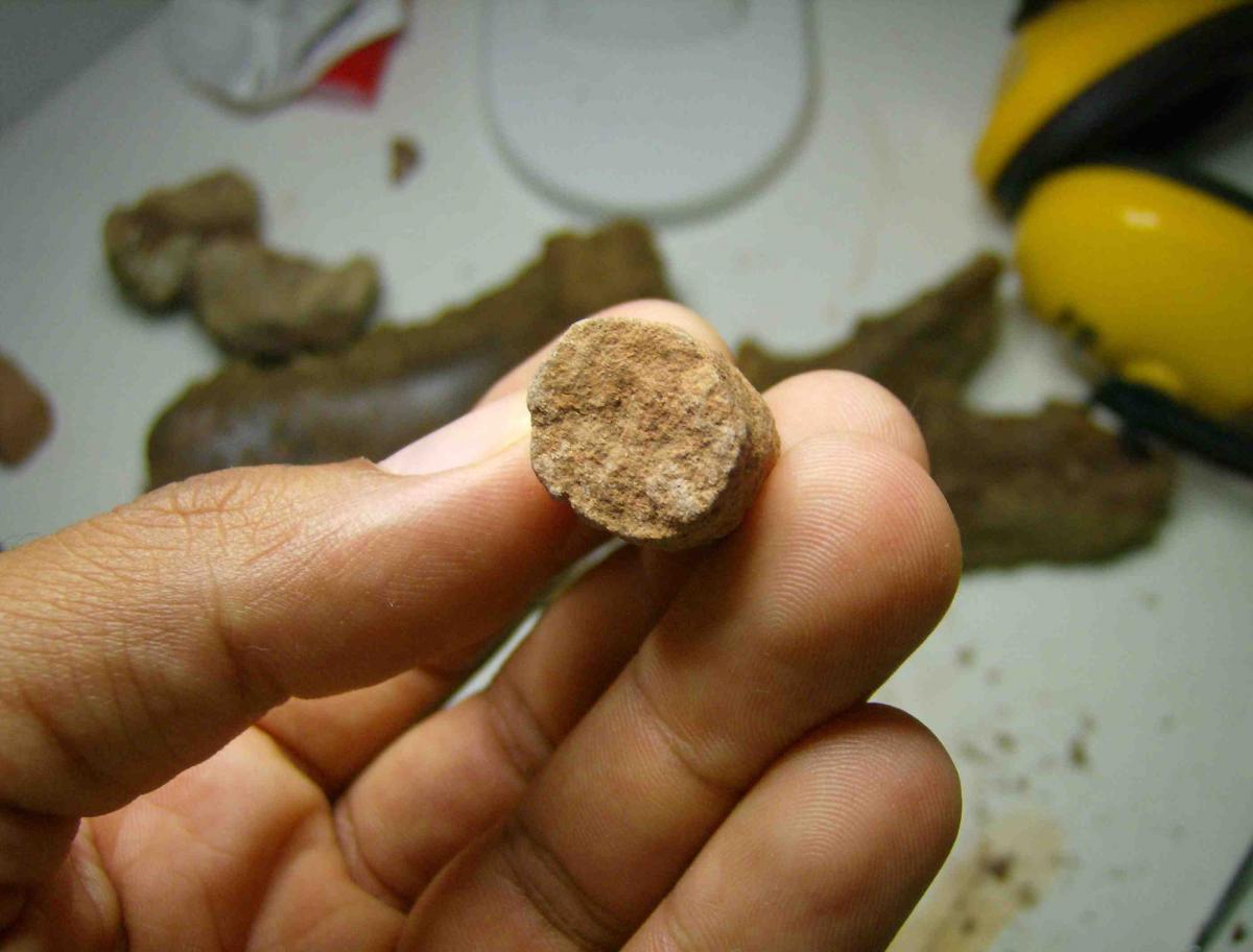 Et dans le manchon, l'argile en séchant se rétracte, et les cylindres de cette boue séchée se tassent les uns sur les autres, avant que de nouvelles crues n'enfouissent définitivement le tout.