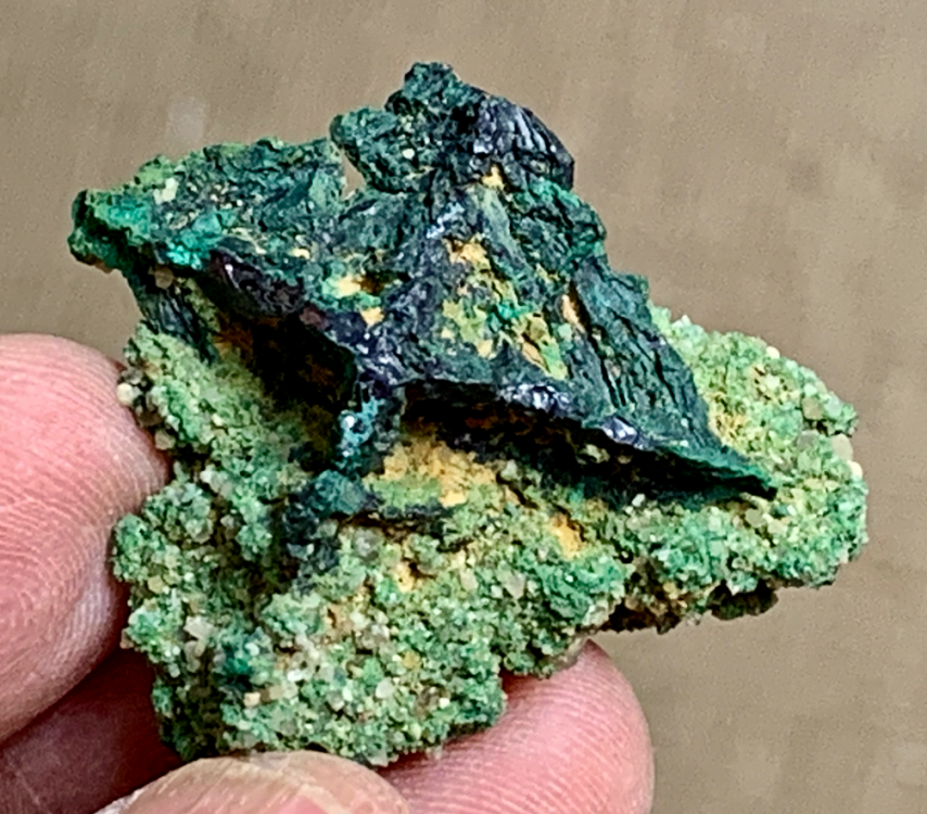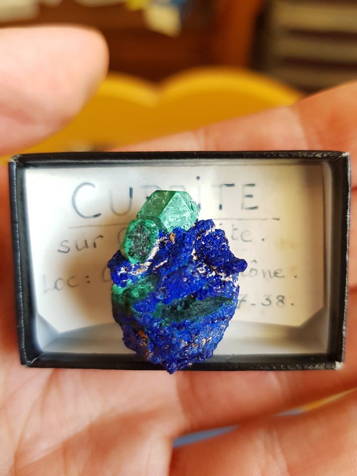 Dans les années 90, on arrivait encore à trouver de temps à autres, cette association sur le terril, parfois plusieurs petites cuprites sur l'azurite mais, c'était avant ! :desole: