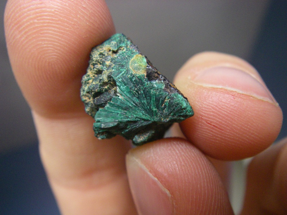 Malachite = gerbes radiées, à surface plus ou moins duveteuse lorsqu'elle forme des billes/sphérules.