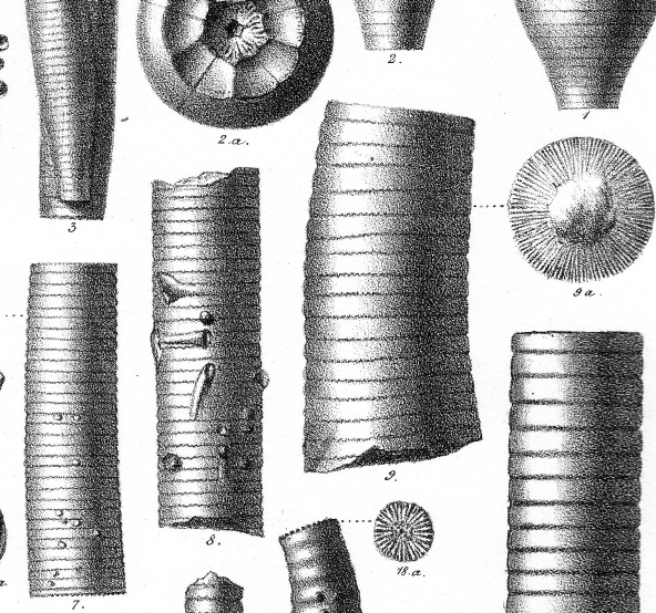 Exemple pour illustrer les "lignes de sutures" entre des articles de crinoïdes, in LORIOL. 1877- Monographie Des Crinodes Fossiles De La Suisse.