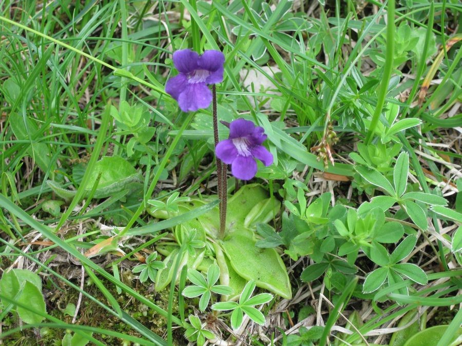 je confirme pour la grassette, Pinguicula, probablement P. grandiflora ; si tu veux vérifier pour l'espèce (je n'ai pas pris le temps de le faire maintenant), vois sur le site de Dionée (amateurs de plantes carnivores francophones) ou sur tela botanica...
