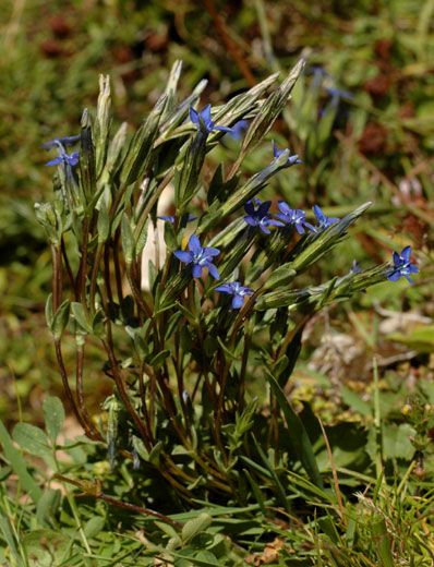 Pour la gentiane, je ne crois pas que ce soit une gentiane des neiges. Sur le site d'identification des plantes que je fréquente, http://www.florealpe...8b0289448d8044e , j'ai ça pour la gentiana nivalis