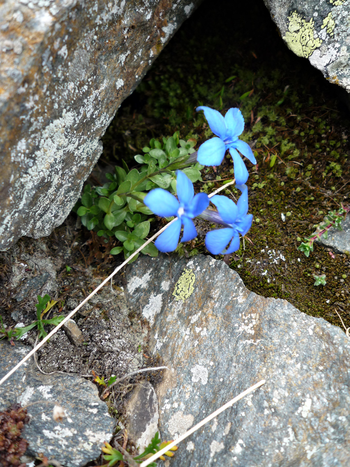 Pour la petite gentiane, gentiane printanière/verna est un bon candidat (c'est même mon préféré) mais comme on ne voit pas bien les feuilles, je ne suis pas sûr. Ça pourrait aussi être la gentiane à feuilles courtes ou la bavaroise/bavarica (un peu comme celle de Spathfluo même si sur sa photo on voit mieux les feuilles. Ces 3 gentianes, printanière, à feuilles courtes et bavaroise sont assez semblables). Par contre, tu dois avoir raison pour la gentiane de Koch. Je viens de vérifier et elle colle mieux au niveau altitude que la gentiane alpine.