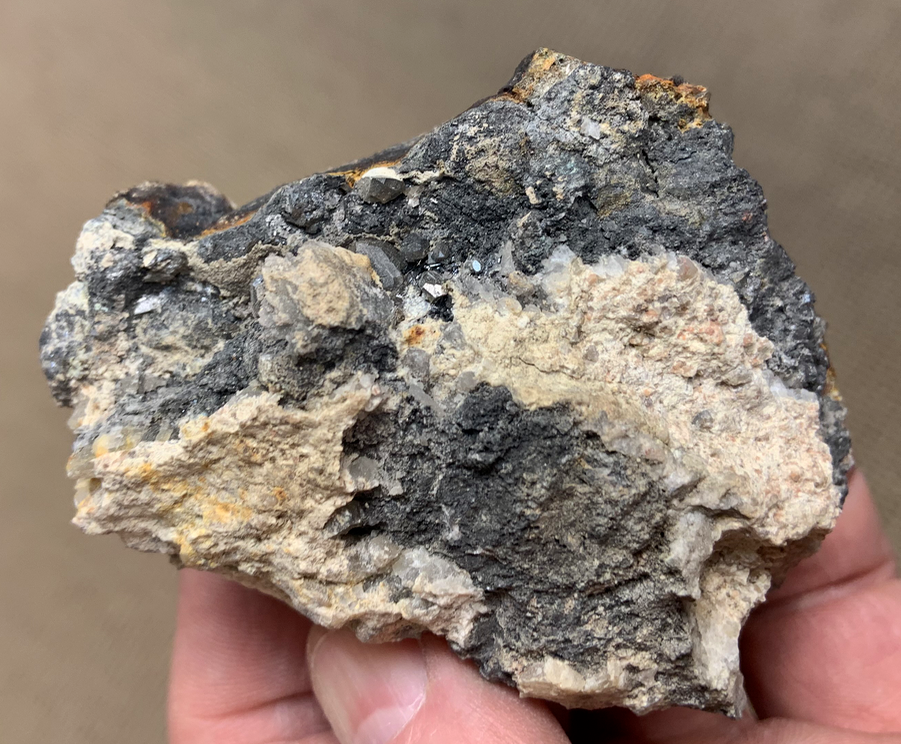 Spécimen sub-flottant, déposé sur le remplissage filonien oxydé. [25mm]