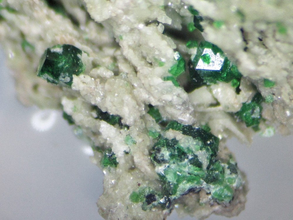 Ci joint une spessartite avec inclusion "métallique bulleuse" d'un bloc remplis de micro grenats de cette occurence, FOV 4mm.