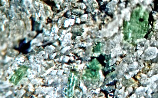 enfin , pour les grenats verts du Jo T. rien à voir : dans mon souvenir , grenats millimétriques verts clairs sur matrice blanche (prehnite ?ou autre ) , photos dans un album conservé par le club des 3B.