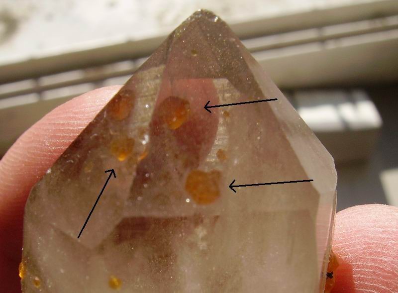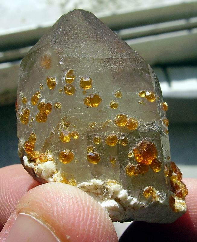 Un autre chinois, toujours spessartite sur quartz fumés (10,5 x 9 cm) :clin-oeil: :