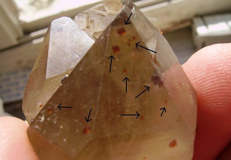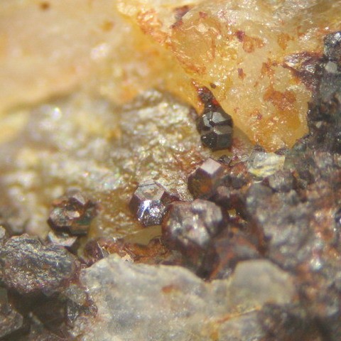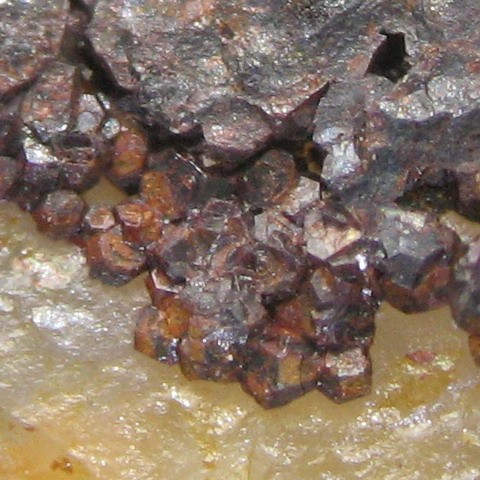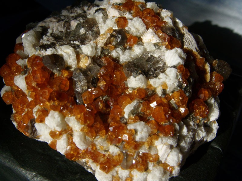 Une bande de chinois ^^, Hessonite de Putian, Province de Fujian (associé à Qtz fumé et feldspaths). Cristaux de l'ordre du mm.