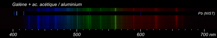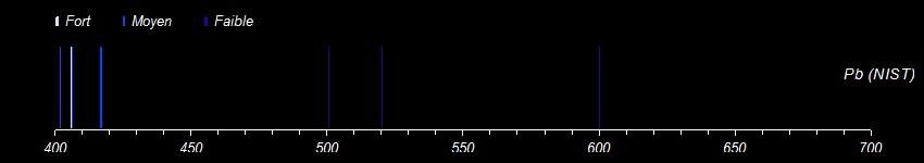 Ici le problème confirmé par NIST, c'est que dans le visible les raies du plomb ne sont ni très intenses ni très nombreuses. Les plus intéressantes se trouvent à la limite de l'ultra-violet, là où mon appareil ne voit plus rien.