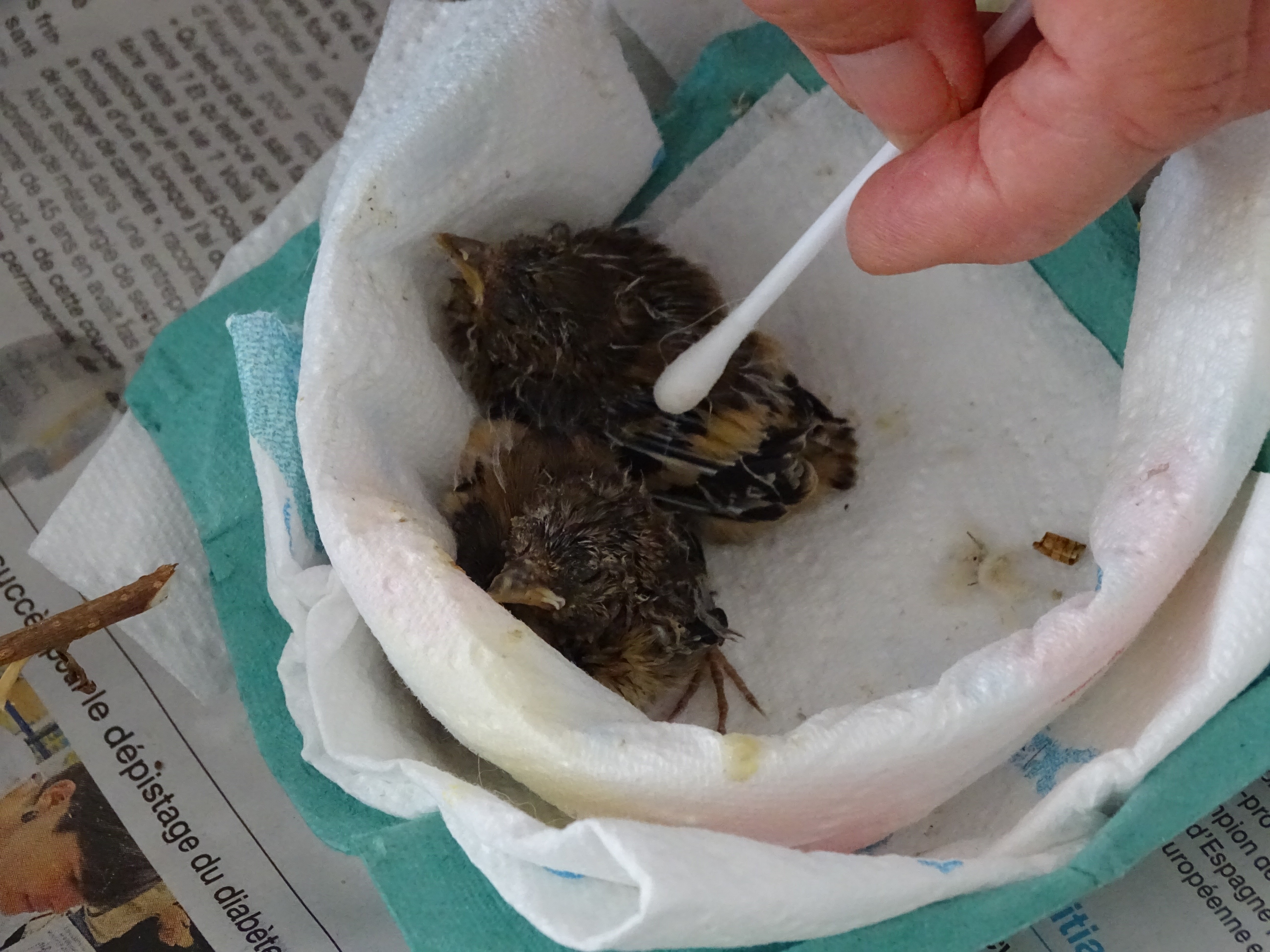 On est plus obligé de les gaver à la seringue, on épaissi la bouillie de graine et on donne avec un pince à épiler en plastique.