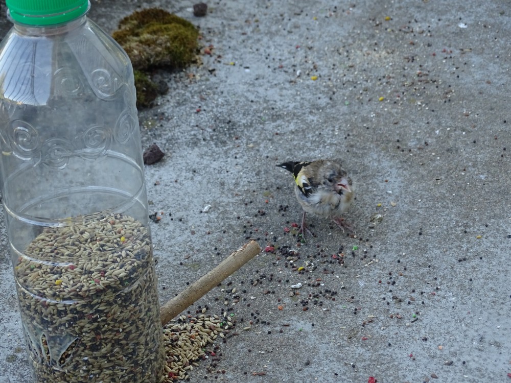 C'est bon, il viennent picorer tout seuls à travers les barreaux.