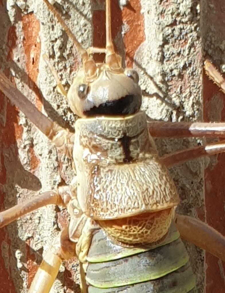 Là vous avez un mâle . Individu de la sous-espèce "Cruciger" de l'Ephippigère des vignes . Le terme correspondant à cette croix sur la "protection" derrière sa tête (protection nommée "pronotum") .