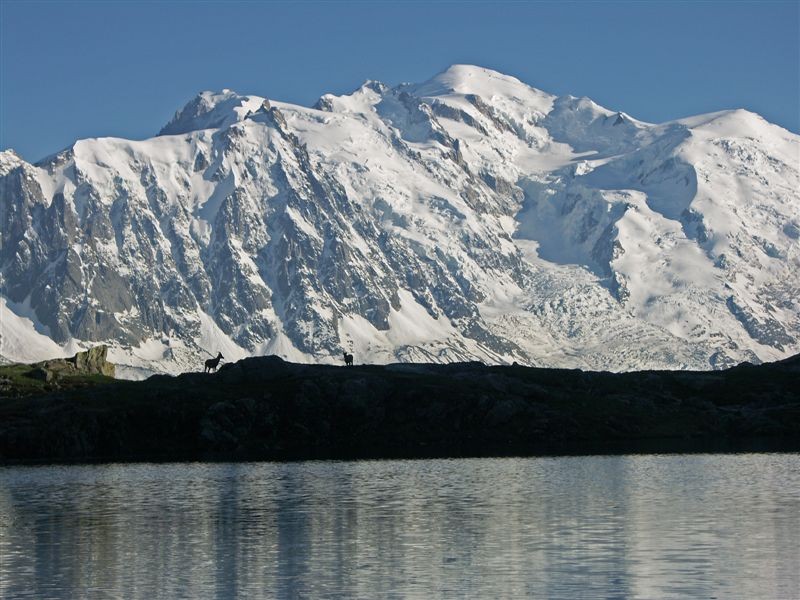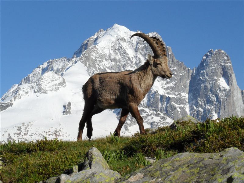 bouquetins, en arrière plan le Mt-Blanc