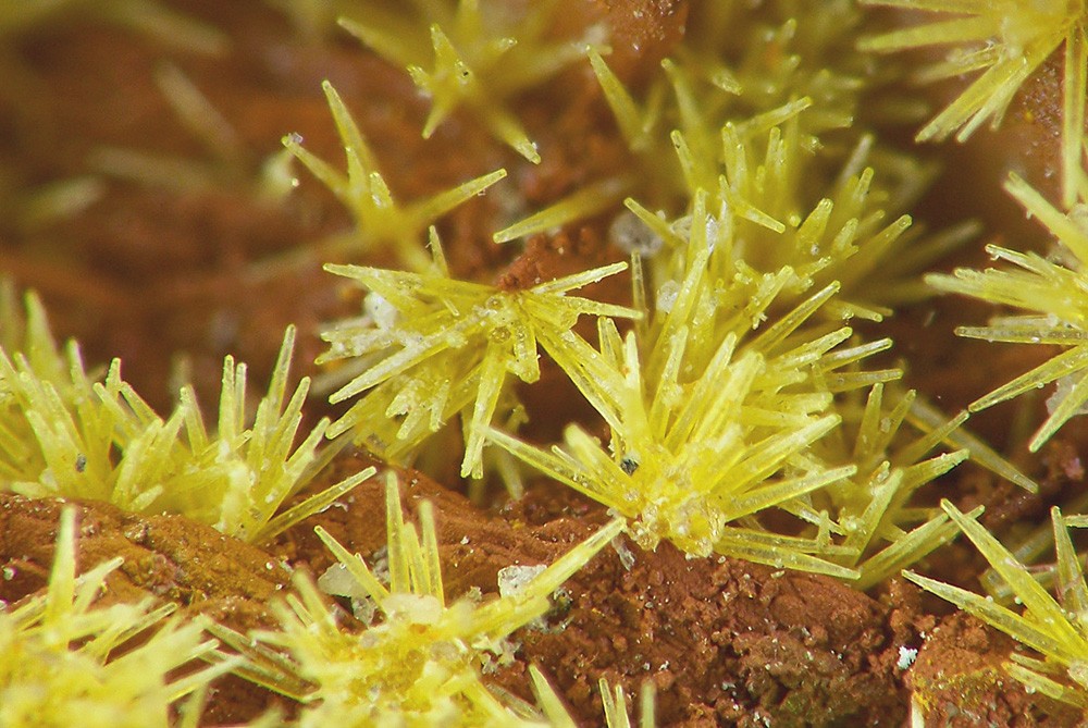 Petite adamite (1,6mm) sur lit de goethite. Origine : Lubumbashi, Zaïre....heu...je veux dire République Démocratique du Congo :siffler: