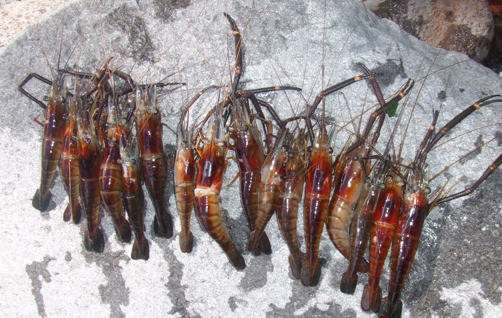 A la poêle , ail et persil , arrosées d'un petit vin blanc de Rangiroa . Ça console d'une journée sans cailloux .  Quelques macrobrachium Lar m'ont échappées mais les grosses