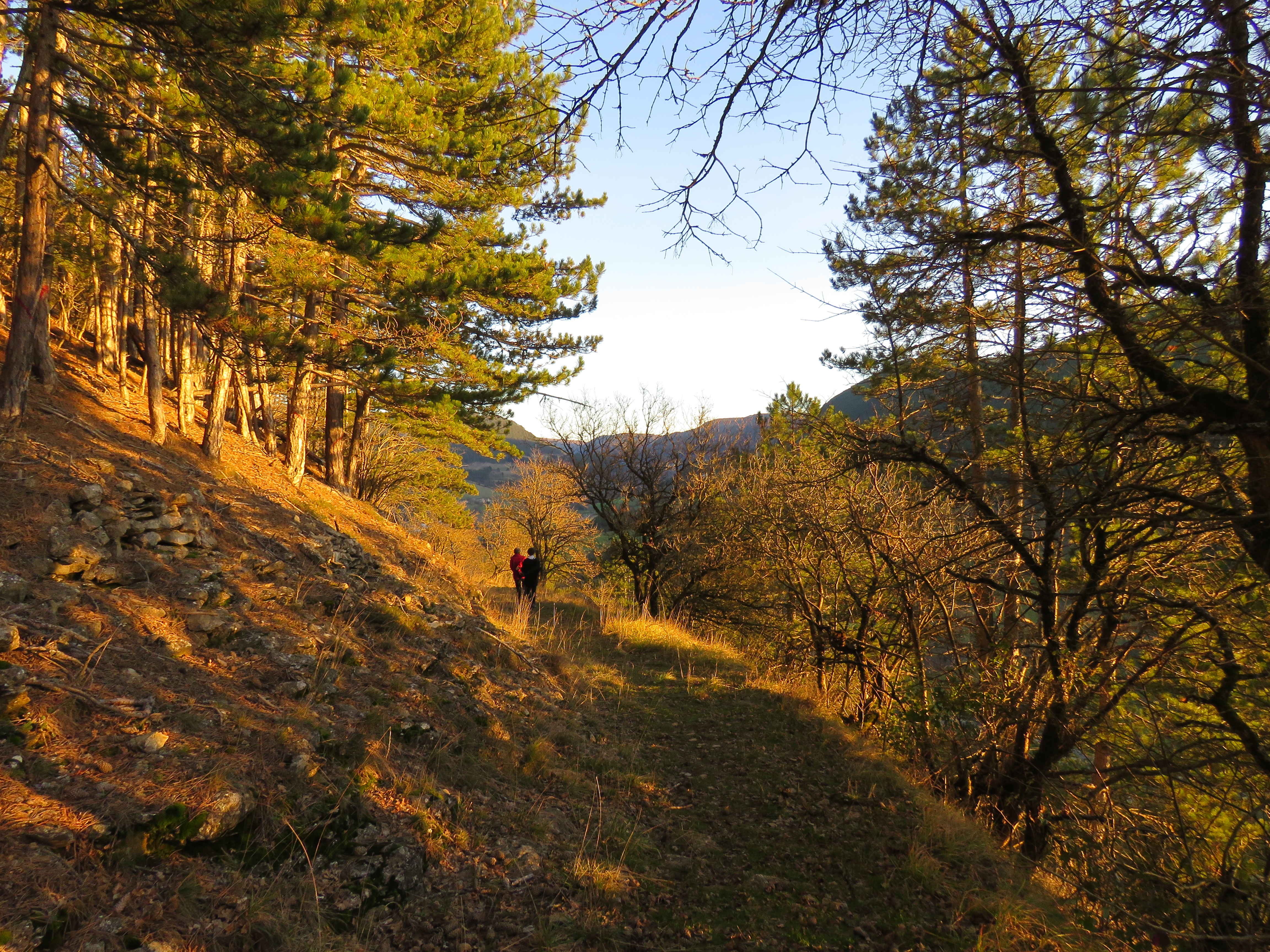 La pente est striée par le passage millénaire des troupeaux de moutons