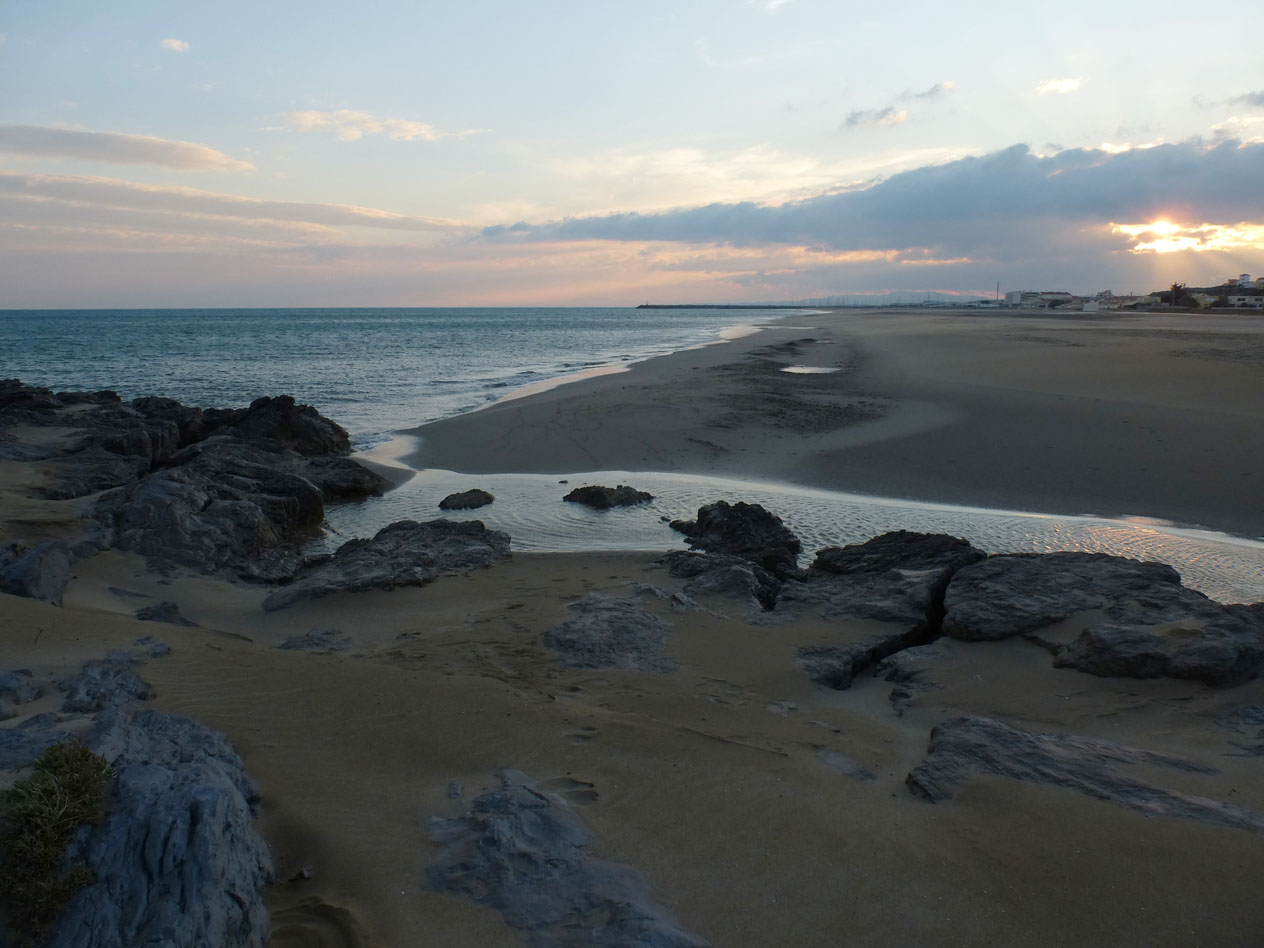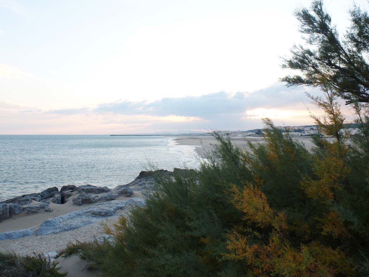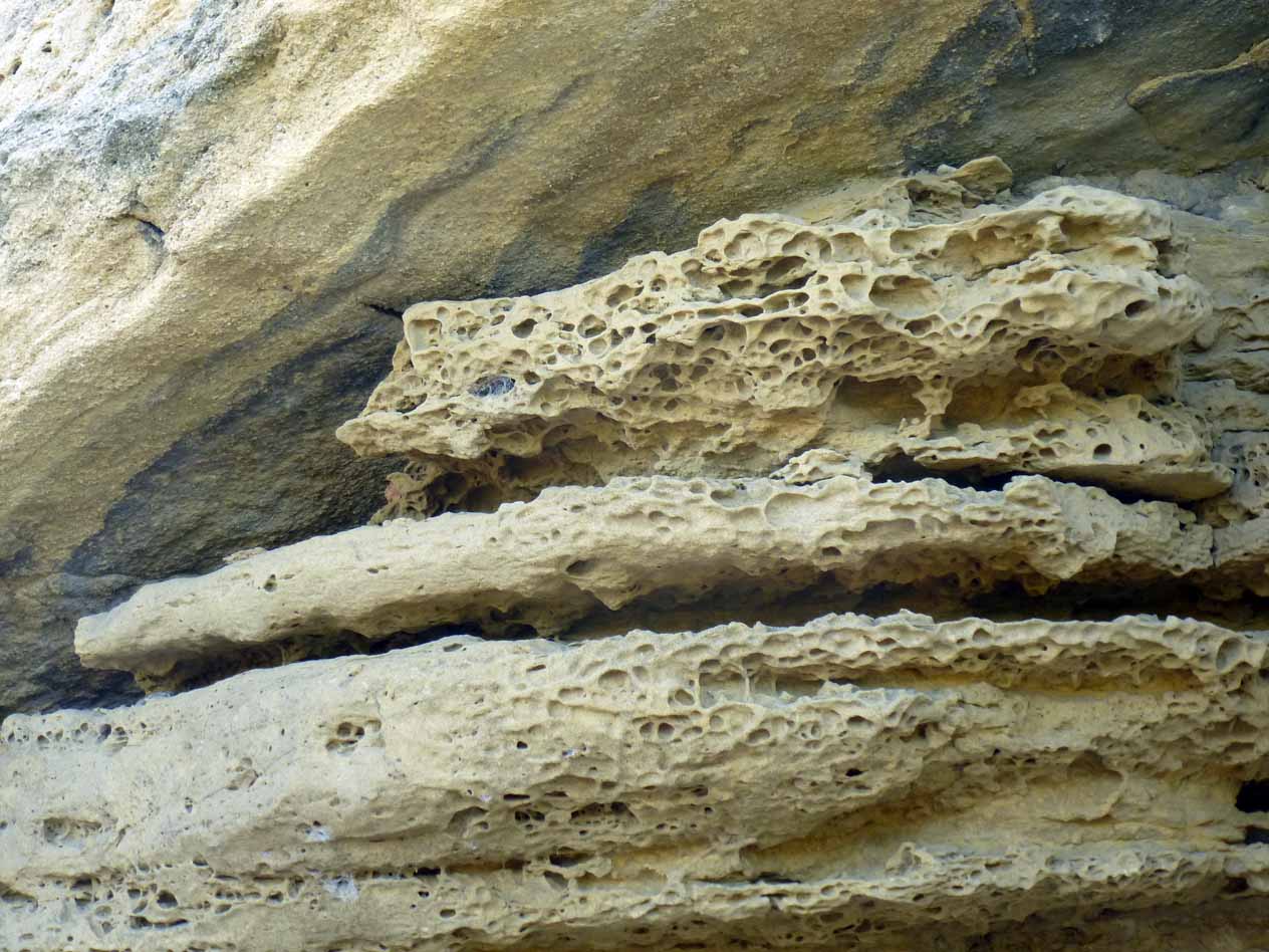 Et puis la mer, avec des calcaires usés par le sable poussé par le fort vent de Tramontane, et aussi par les vagues quand le vent est au Marin ou vient de l'Est.