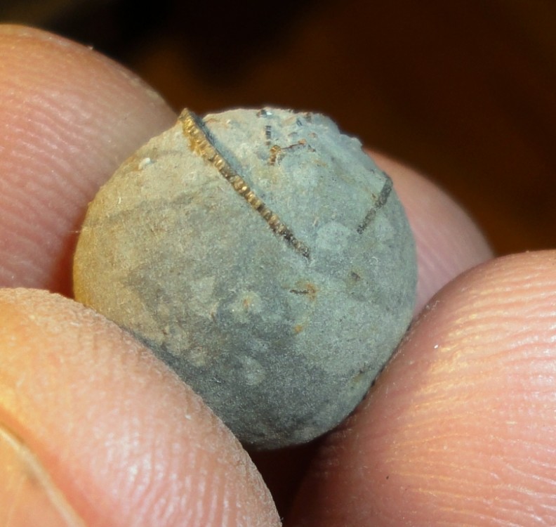 çà ressemble beaucoup c'est troublant, la couche blanche en surface surtout, les balles de mousquets c'est du plomb coulé, , la ligne qu'on appercois sur tes photos correspond aussi,mais si tu as des micro fossile qui apparaissent, tu as raison alors des balles de mousquets c'est pas possible,