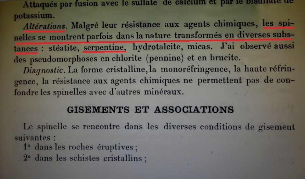 A priori, la bronzite est un orthopyroxène (fréquemment trouvé dans certaines roches ultrabasiques) et la bastite est son altération en minéraux de la famille des serpentinites. le spinelle qui est un oxyde ne peut donc pas s'altérer en silicate.
