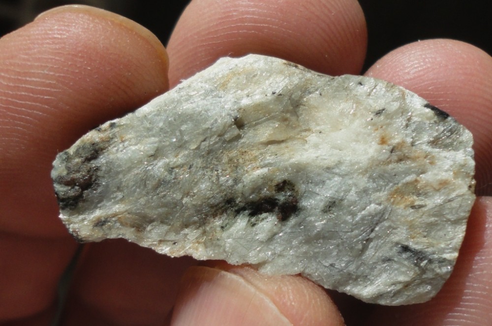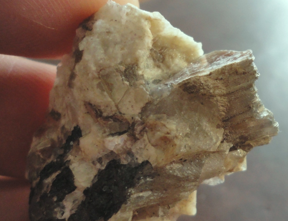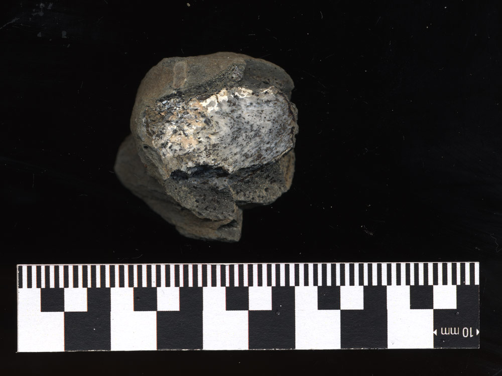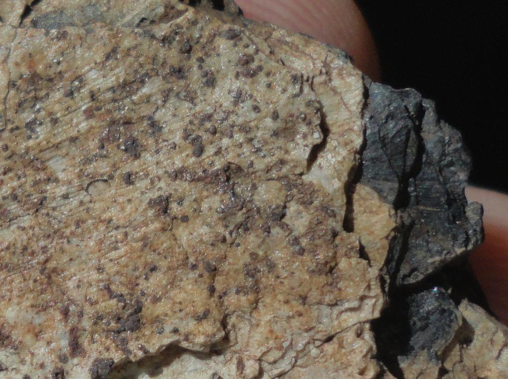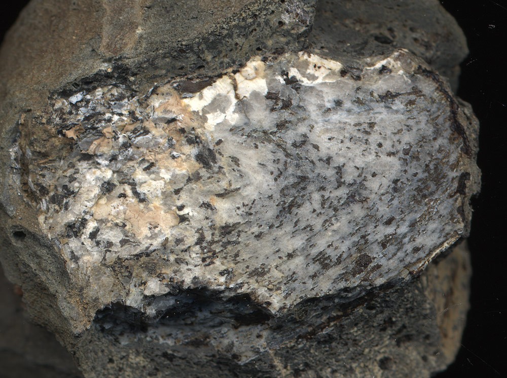 Les grenats ont fondu et leur présence fossile se résume à des taches sur ce qu'il reste du silicate d'alumine.