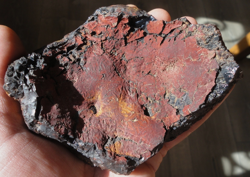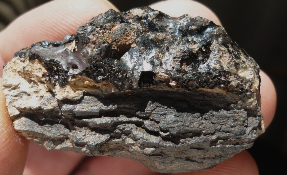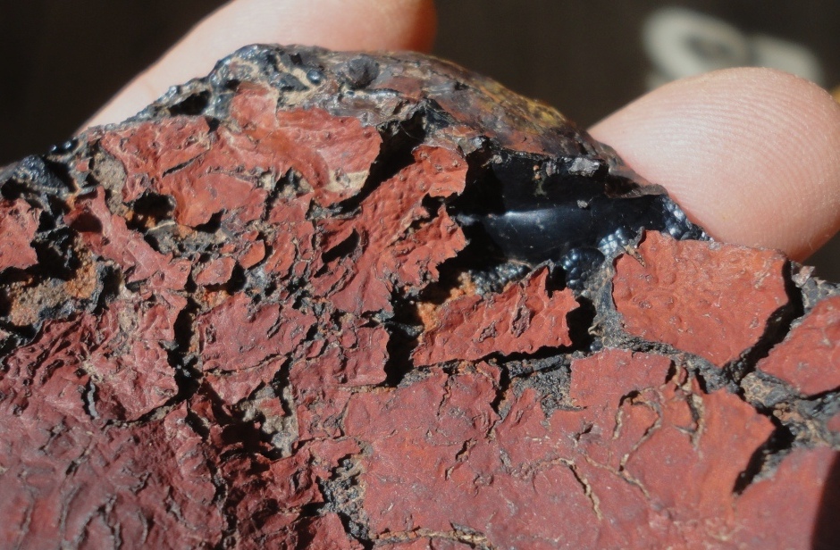 Puis sur ce dernier échantillon, l'autre face montre une roche cuite et transformée mais pas jusqu'à produire un verre.