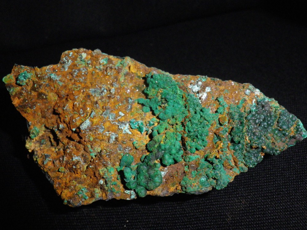 La deuxième photo sur l'autre face qui est entièrement couverte de malachite avec un peu d'azurite. Dimension de la zone photographiée: 9cm x 6cm