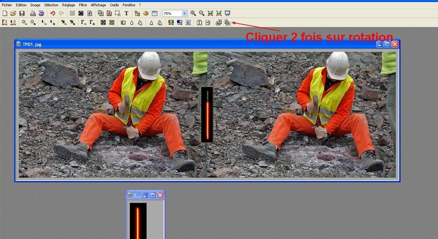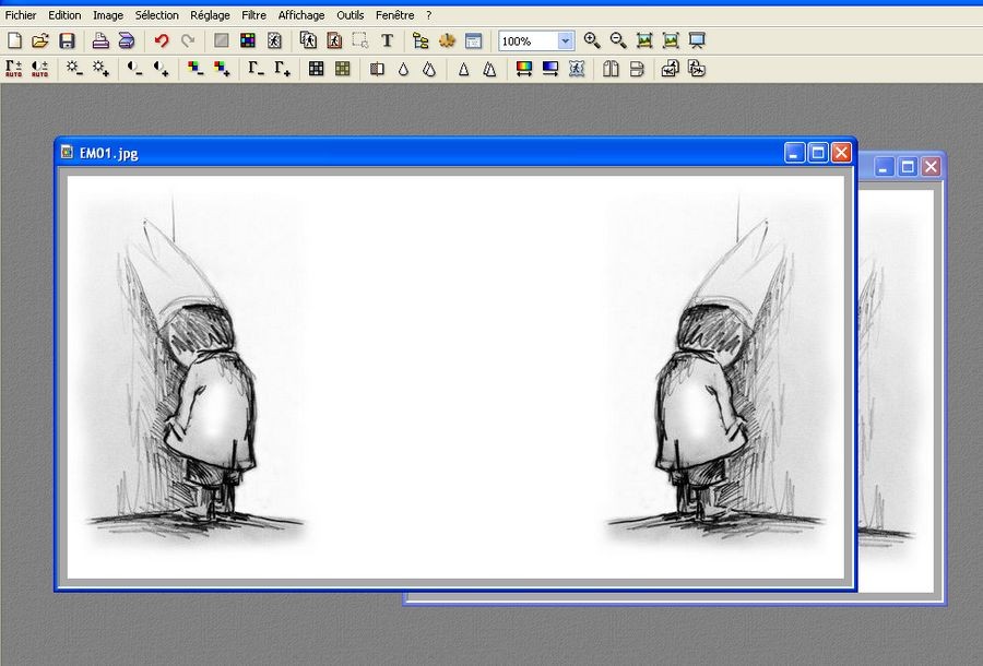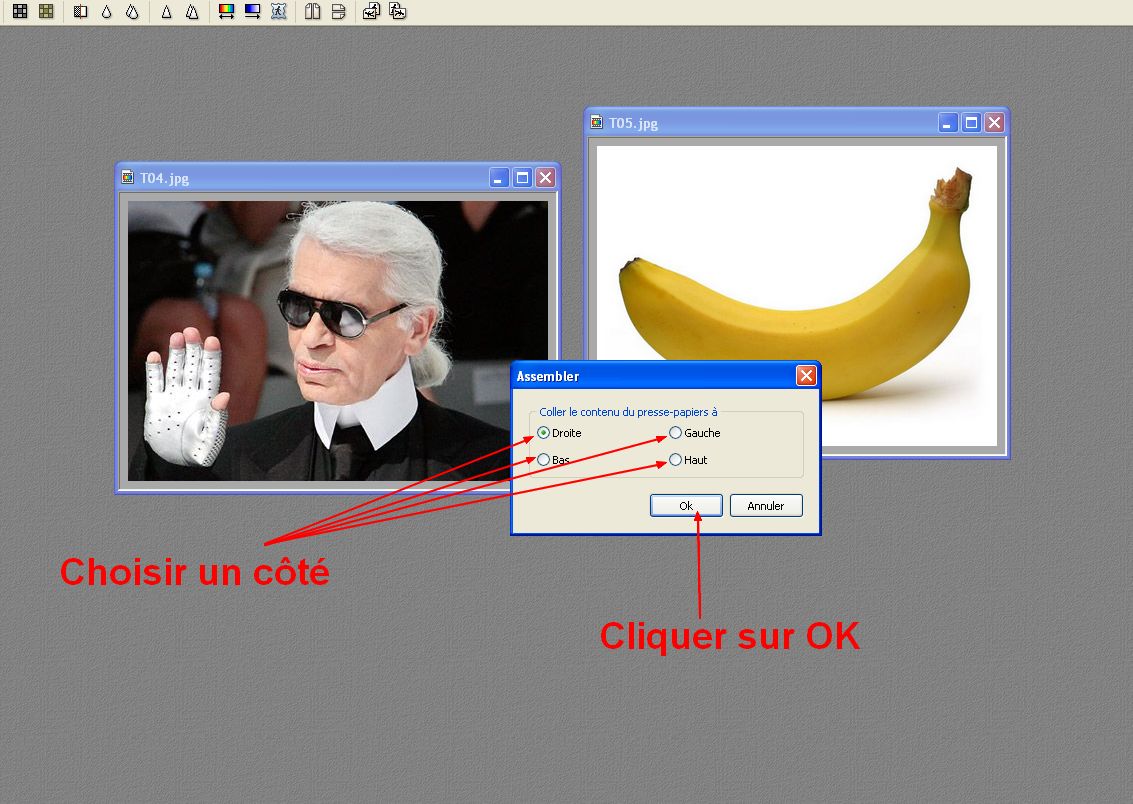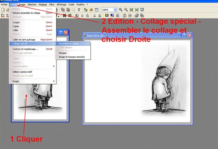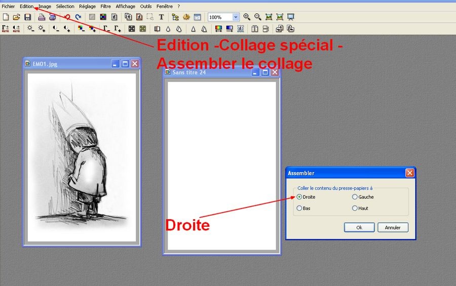 Puis cliquer sur l'image originale (juste pour la sélectionner) et à nouveau Edition - Collage spécial - Assembler le collage et choisir Droite.