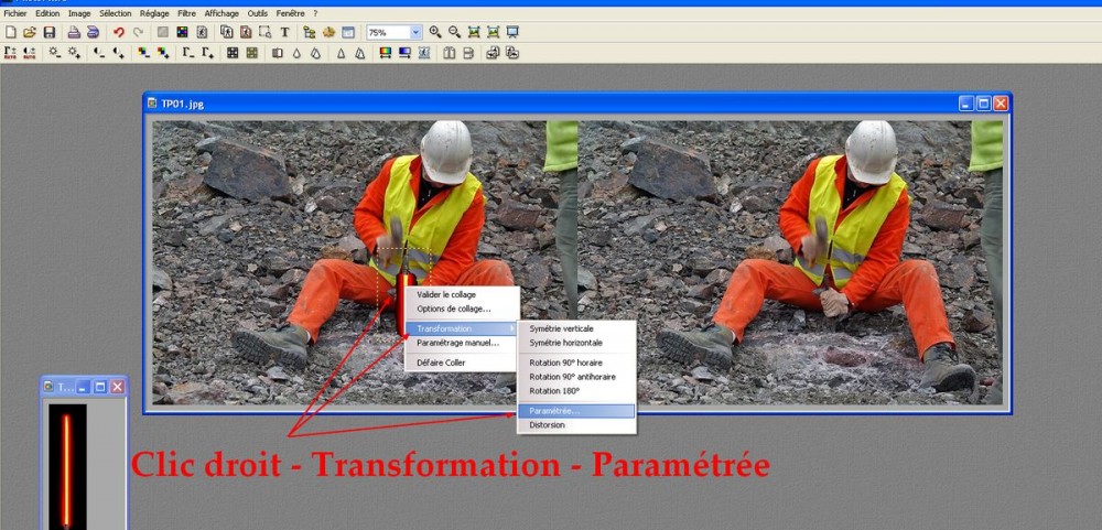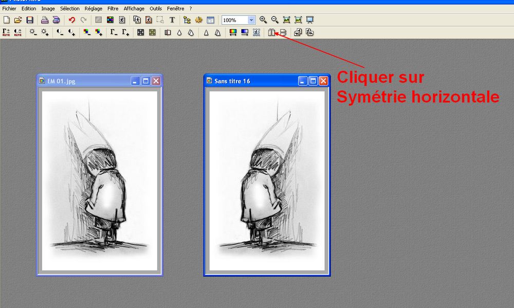 Cliquer sur Symétrie horizontale, la photo collée s'inverse.