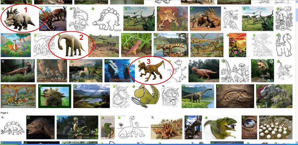 Alors le choix du dinosaure est important. Il faut prendre un dino sur un fond unicolore. Je tape Dinosaure sur Google Image et je choisis un des dinos. Ceux entourés de rouge sont corrects car ils ont tous un fond unicolore.