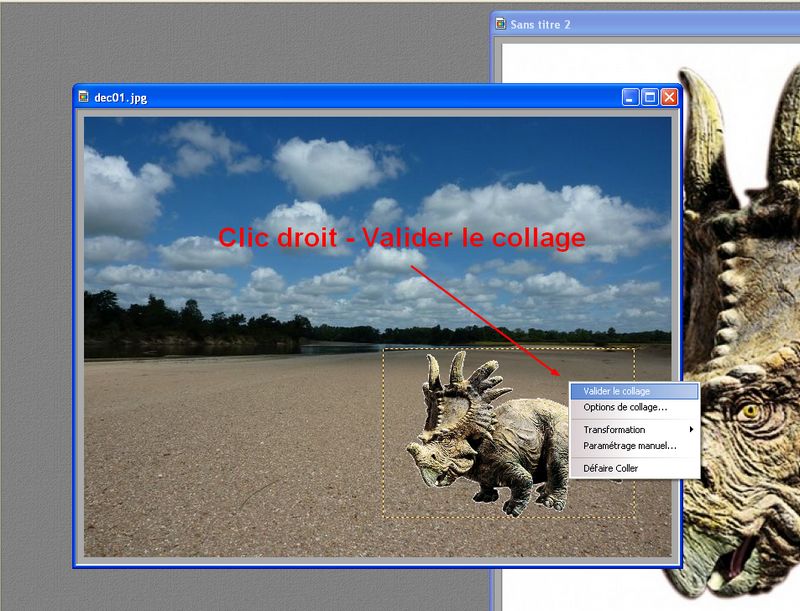 Faire un Clic droit dans l'image du dino puis Valider le collage.