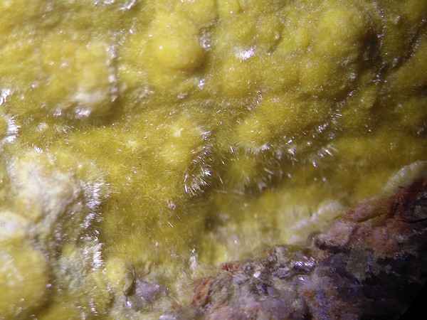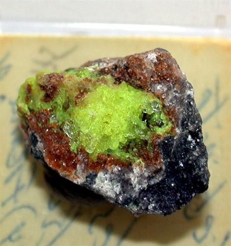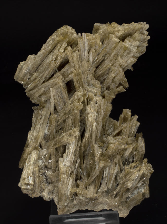 Bundled aggregates, on matrix, of bright acicular crystals with a slightly greenish brown color. The sample, as is written on the back of the Emringer collection label, is from a unique find at the locality so the sample must be considered as a rarity.