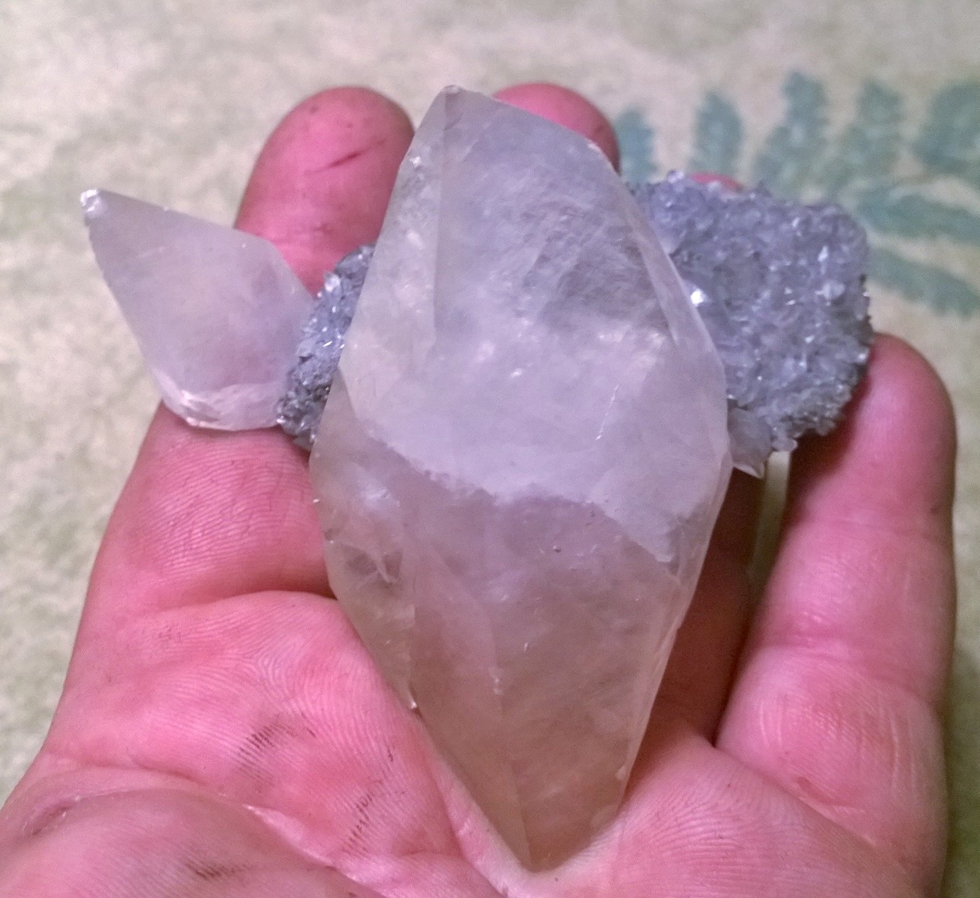 Une fluorite sur galène de Largentière (à peu près 8cm).