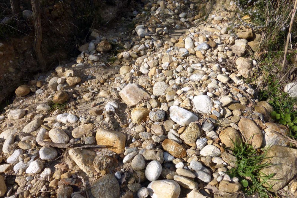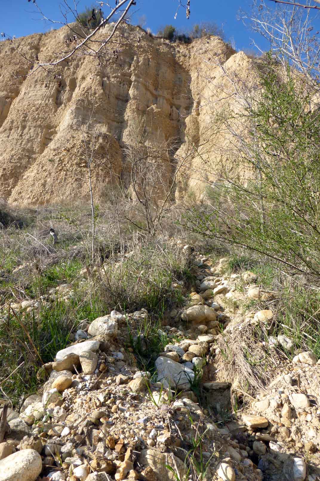 1: le pliocène (argiles, sables, graviers) foreset de delta bordier, qui remanie les éléments provenant de l'érosion du massif de granite du Quérigut/Millas...