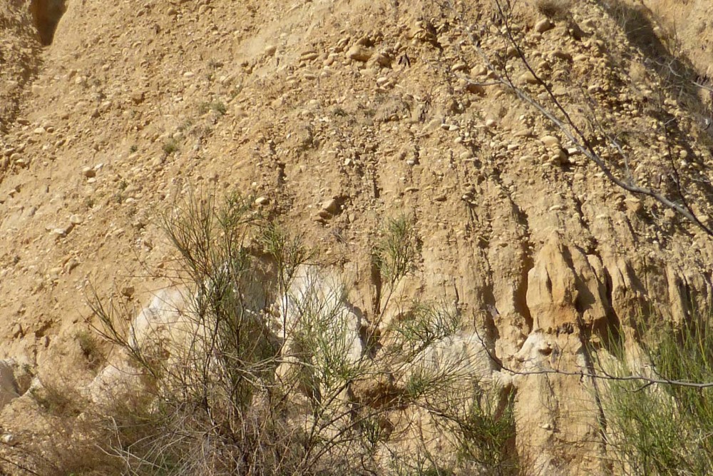 Des pendages de 10 à 35°...(voir photos).Disparition progressive du domaine marin, pour passer au pliocène continental, et les rivières creusent des vallées, laissant des terrasses alluviales du quaternaire ...Sur les plus anciennes ont été trouvés des galets façonnés et utilisés par l'Homme préhistorique d'avant l'époque de l'Homme de Tautavel.