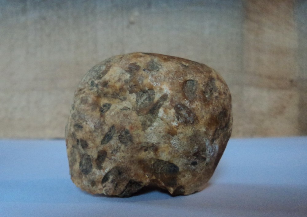 Galet roulé prélevé parmi des alluvions dans le massif du Plantaurel (pré-Pyrénées ariégeoise).